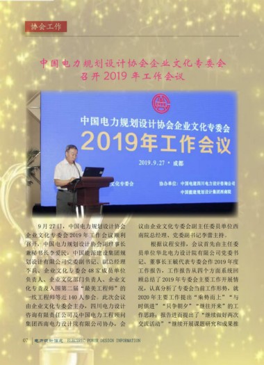 9 月 27 日,中国电力规划设计协会 议由企业文化专委会副主任委员单位西