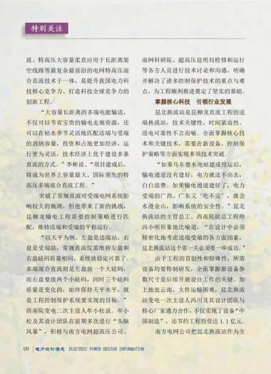 “以天平为例,左盘是送端站,右 精密化地考虑送端受端的各方面因素, 数字化设计技术为输变电工程新基 昆柳龙直流工程将提升远距离、大