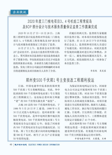 500 千伏变电站,是华中电网在豫中地区的 现场人员的共同努力下,工程整体进度