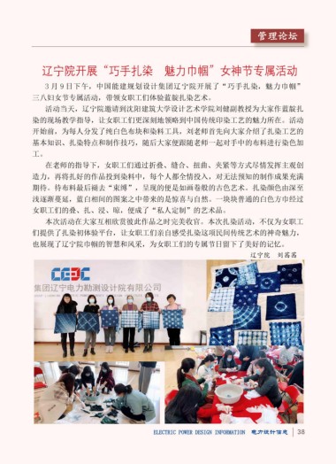 3 月 9 日下午,中国能建规划设计集团辽宁院开展了“巧手扎染,魅力巾帼”