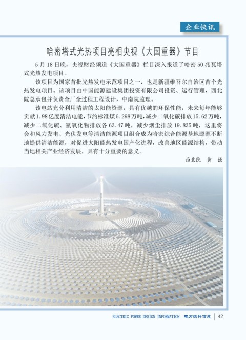 吉林院中标国华投资吉鲁(乾安) 哈密塔式光热项目亮相央视《大国重器》节目