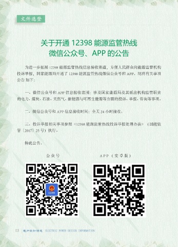 投诉举报,国家能源局开通了 12398 能源监管热线微信公众号和 APP。现将有关事项
