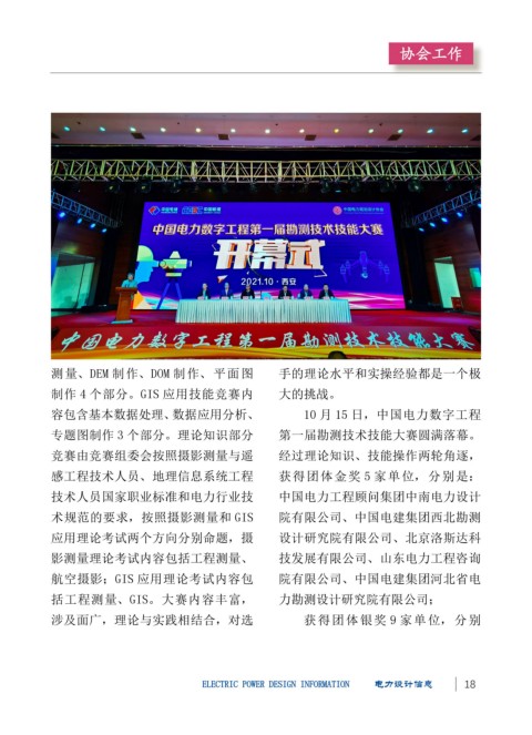 括工程测量、GIS。大赛内容丰富, 力勘测设计研究院有限公司;