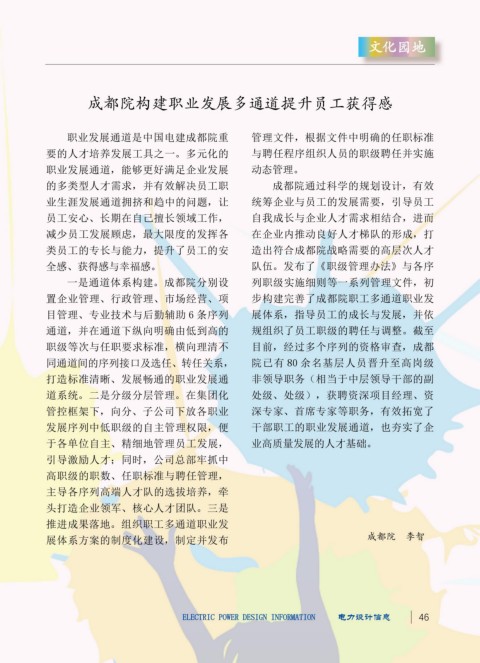 一是通道体系构建。成都院分别设 列职级实施细则等一系列管理文件,初