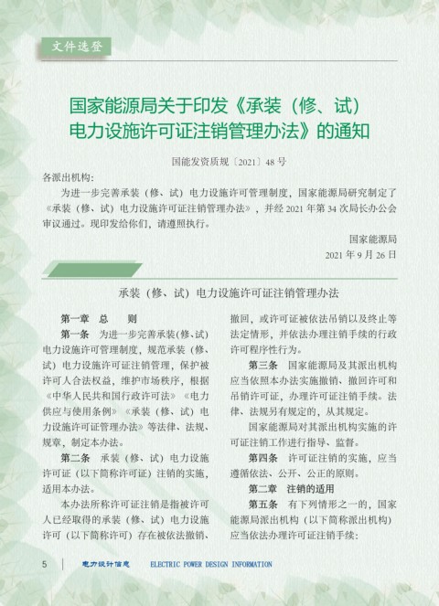 《承装(修、试)电力设施许可证注销管理办法》,并经 2021 年第 34 次局长办公会
