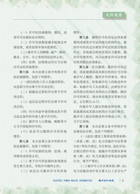 ELECTRIC POWER DESIGN INFORMATION 电力设计信息 6