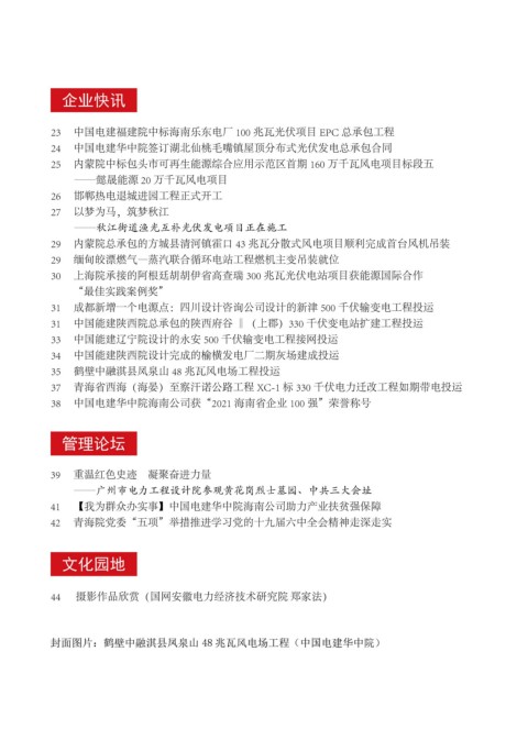 封面图片:鹤壁中融淇县凤泉山 48 兆瓦风电场工程(中国电建华中院)