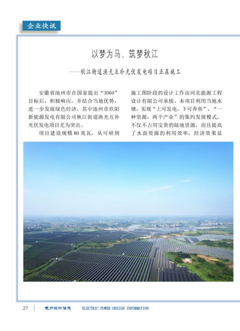 进一步发展绿色经济。其中池州市玖阳 塘,实现“上可发电,下可养鱼”,“一