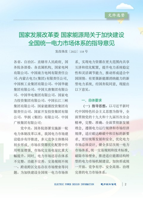 3.《工程设计资质标准(征求意见稿)》(略) 电力体制改革以来,我国电力市场建 规律,适应碳达峰碳中和目标的新要