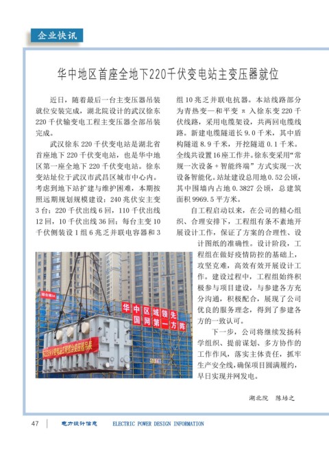 华中地区首座全地下220千伏变电站主变压器就位 广东院签约京津冀大型基础设施建设项目