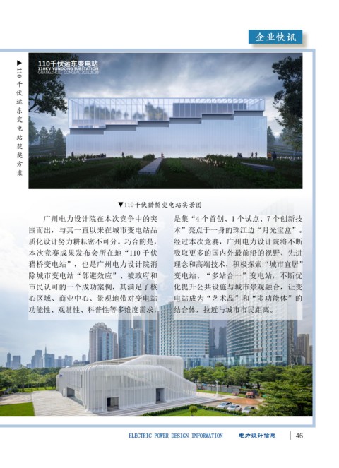 胜奖。 面造型简洁大方,让变电站从传统的工 广州电力设计院在本次竞争中的突 是集“4 个首创、1 个试点、7 个创新技