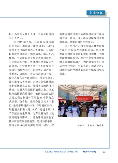 陲的独龙江乡结束了历时 8 年独立电网 开断接入独龙江变工程;独龙江变至茨 年终于交出满意答卷。五年来,云南院 经济社会长远发展用电需求,提升独