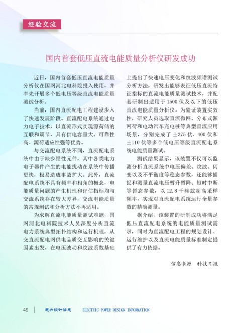 49 电力设计信息 ELECTRIC POWER DESIGN INFORMATION ELECTRIC POWER DESIGN INFORMATION 电力设计信息 50