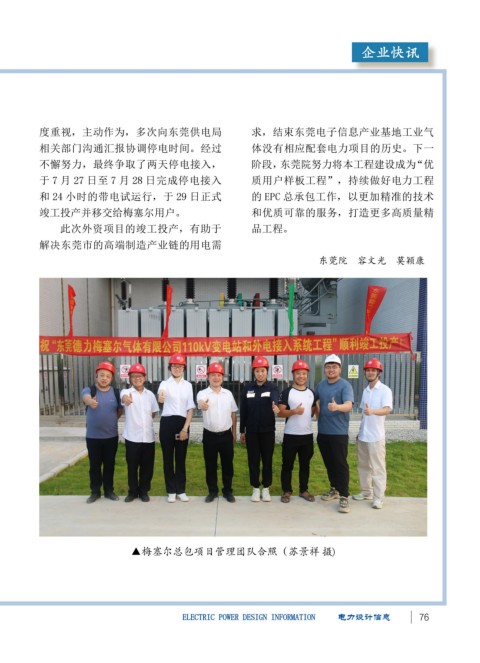 东莞德力梅塞尔气体有限公司110千伏变电站 度重视,主动作为,多次向东莞供电局 求,结束东莞电子信息产业基地工业气
