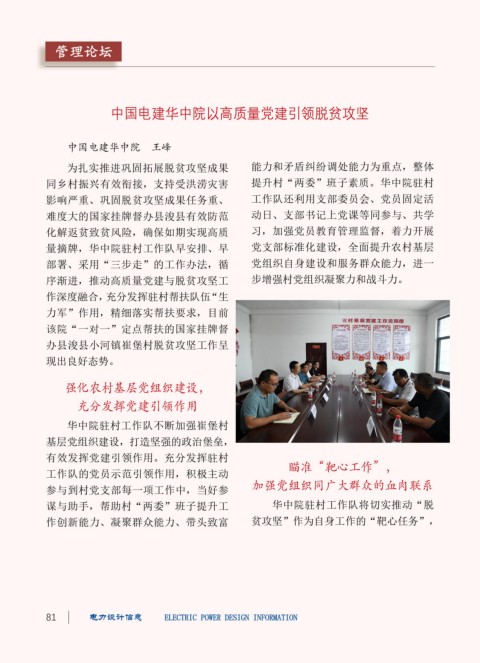 工作队的党员示范引领作用,积极主动 院的企业特色,在当地村容整治、河道 化党的建设,汇聚发展合力,在当地政