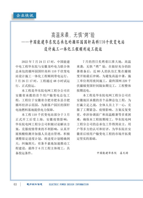 2022年7月24日17时,中国能建 7 月的烈日炙烤着江淮大地,高温