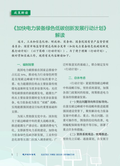 《加快电力装备绿色低碳创新发展行动计划》