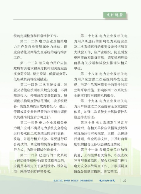 9 电力设计信息 ELECTRIC POWER DESIGN INFORMATION ELECTRIC POWER DESIGN INFORMATION 电力设计信息 10