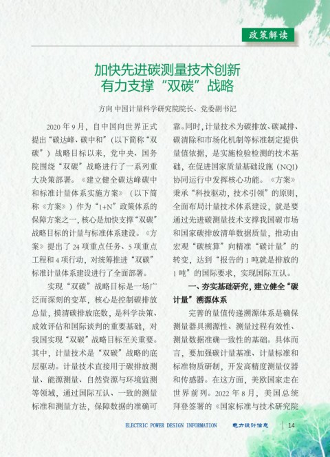 为进一步加强电力二次系统安全 明确了二次系统日常维护、更新改造、 方向 中国计量科学研究院院长、党委副书记