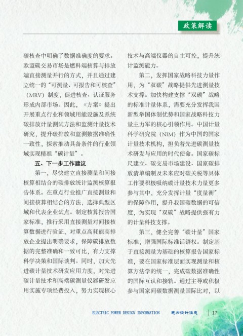 碳核查中明确了数据准确度的要求。 技术与高端仪器的自主可控,提升统 国际互认的碳排放数据测量体系为支 设和融合发展。在体制机制层面,研
