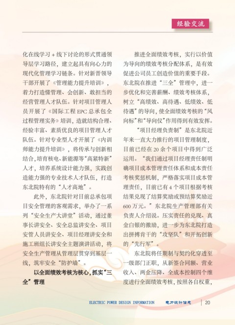 让人才支撑带动企 事长讲安全、安全总监讲安全、项目 金白银的激励,进一步为东北院打造