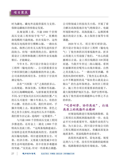 保障边疆地区持续稳定发展。 力解决高海拔地区电气绝缘设计、电磁 宿的夜晚,被荆棘划破的褴褛衣衫,被 他始终有信心完成任务。