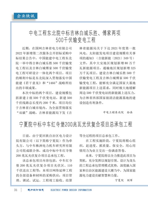 日前,由宁夏回族自治区电力设计 等全过程的项目总承包工作。