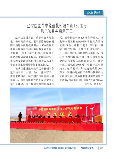 千伏线路总长度约 200 千米,项目均位 设创造有利条件。 地项目,由中国能建投资公司辽宁分公 业基地,推动朝阳早日实现“双碳”目标。