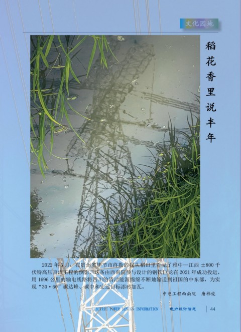 峰 伏特高压直流工程的倒影。这条由西南院参与设计的钢铁巨龙在 2021 年成功投运,