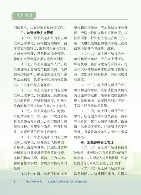 视和维护。发现安全隐患,应及时整 海上风电场区渔船、运输船只的安全 (三十一)海上风电场应严格执 (三十六)地方各级能源管理