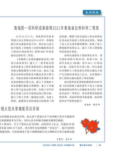 11 月 21 日,福建省能源规划研究 大规模可再生能源及多元化负荷发展需 奖励大会在青海会议中心召开,青海院 以及由此引起的土性的动态变化,构建