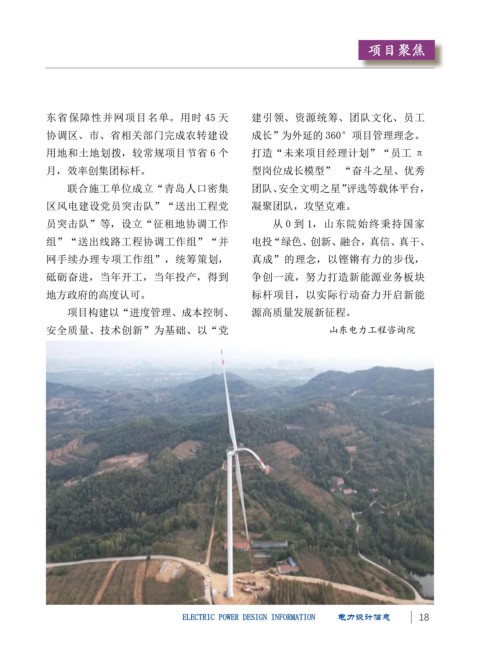 山东院自主投资的青岛大张山风电项目 东省保障性并网项目名单。用时 45 天 建引领、资源统筹、团队文化、员工