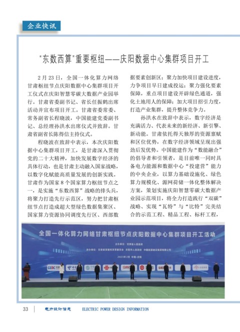 “东数西算”重要枢纽——庆阳数据中心集群项目开工 助力甘肃数字经济创新发展;将以此次 力枢纽智慧运营平台,打造一个零碳绿