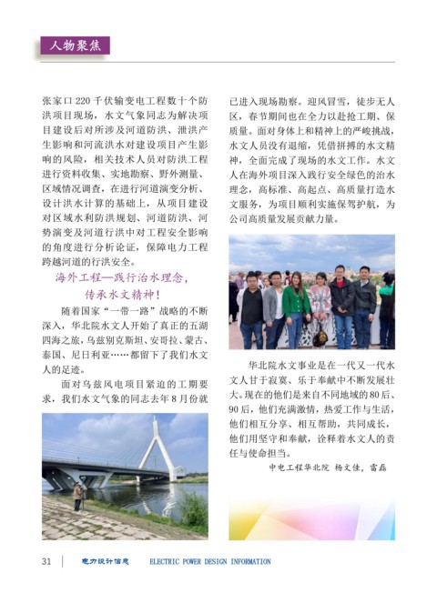 进行资料收集、实地勘察、野外测量、 人在海外项目深入践行安全绿色的治水 2023 年,是中国能建推进高质量发展、聚焦构建“三新”目标的历史节点,