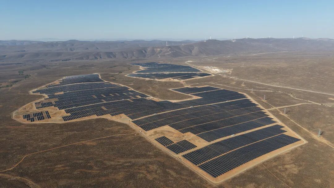 南非奥亚混合能源项目位于西开普省与北开普省交界处,主要施工内容包括155兆瓦光伏发电、86.4兆瓦风力发电和94兆瓦/242兆瓦时储能设施建设,配套33公里132千伏送出线路、升压站、开关站、对侧站间隔等附属设施以及2年电站运维服务,建成后可保证128兆瓦电能稳定输出。