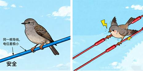 图3 小鸟站在高压线上为什么不触电