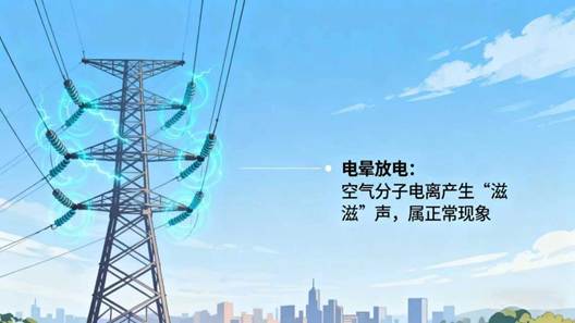 当导线表面的电场强度超过空气的绝缘能力时,就会使周围的空气分子发生电离,产生微弱的放电现象,同时发出“滋滋”声。这属于高电压环境下的正常物理现象,并不是漏电,也不会对公众安全造成威胁。在空气湿度较大的天气里,这种声音可能会更加明显,但这完全在工程设计预期范围内。