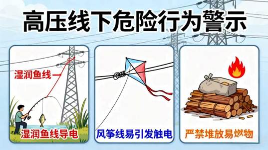 钓鱼时,湿润的鱼线可能成为良好的导体,一旦接触高压线,立即会造成触电事故。放风筝时,风筝线可能缠绕电线,同样会导致触电。而在高压线下堆放物品,尤其是易燃物,不仅可能引发火灾,还可能影响线路安全运行。